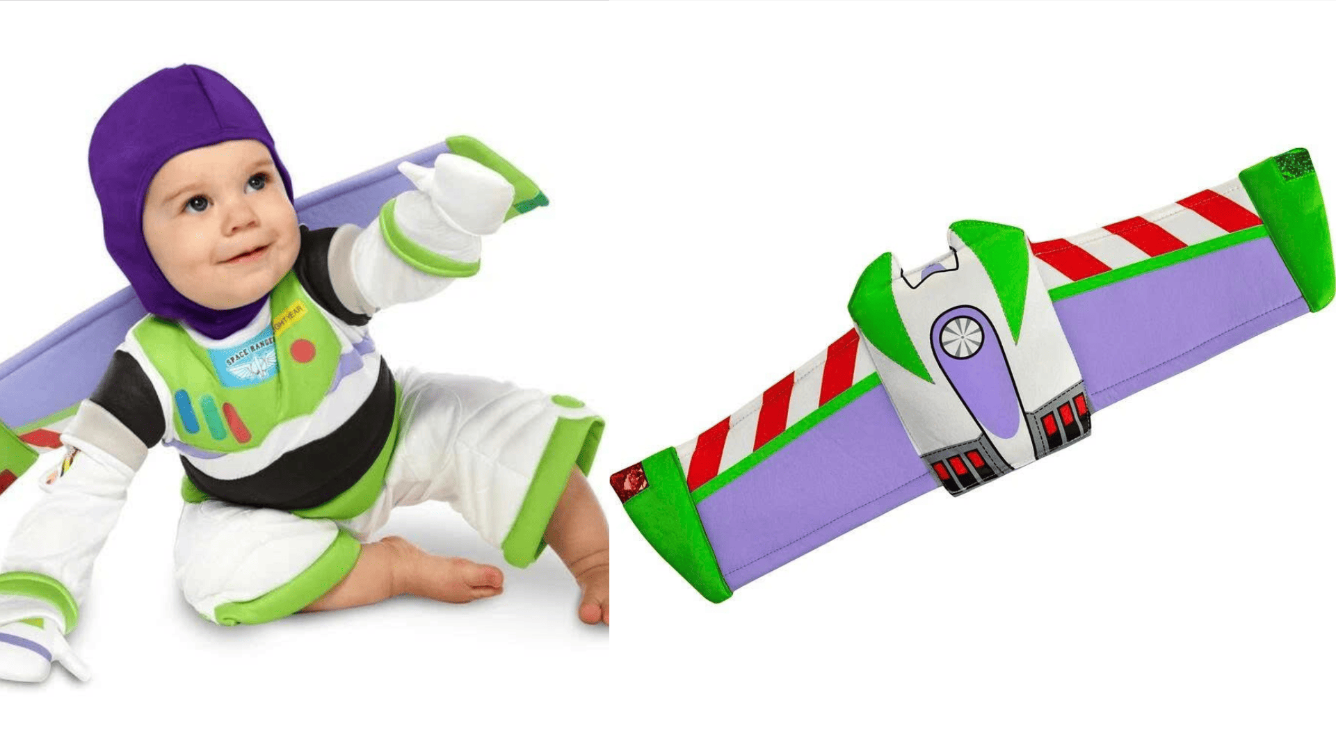 Disney clothing and costumes for baby boys, including bodysuits, rompers, swimwear, and themed outfits from Toy Story, Cars, Monsters, Inc., and more.