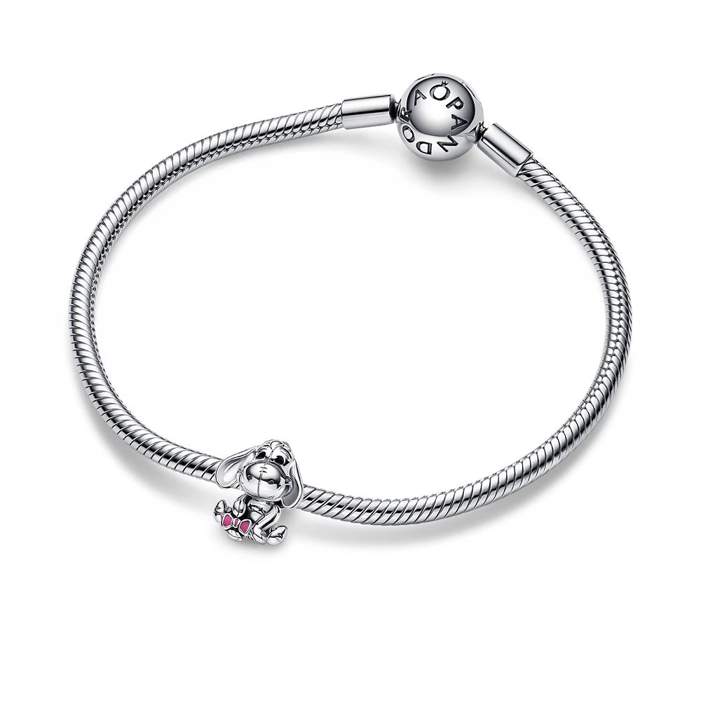 Friends stick togetherβjust like good ol’ Eeyore and his companions in the Hundred Acre Wood. This sterling silver charm from Pandora finds Eeyore in a sitting pose, looking rather cheerful, as he’s found his often-lost tail and is holding it in his front paw. True-to-life ”stitching” details and black enamel eyes bring the much-loved donkey to life. Wear Eeyore on your Pandora Moments charm holders as a celebration of friendship in all its shapes and sizes.