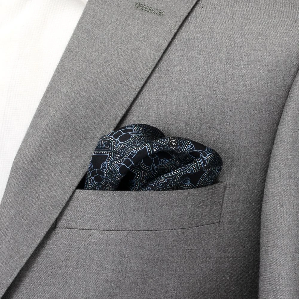 Little Grogu is featured in the allover design of this elegant silk handkerchief. The character from Star Wars: The Mandalorian is incorporated into a black and white filigree pattern, creatingΒ a stylish accessory to complement any suit.
