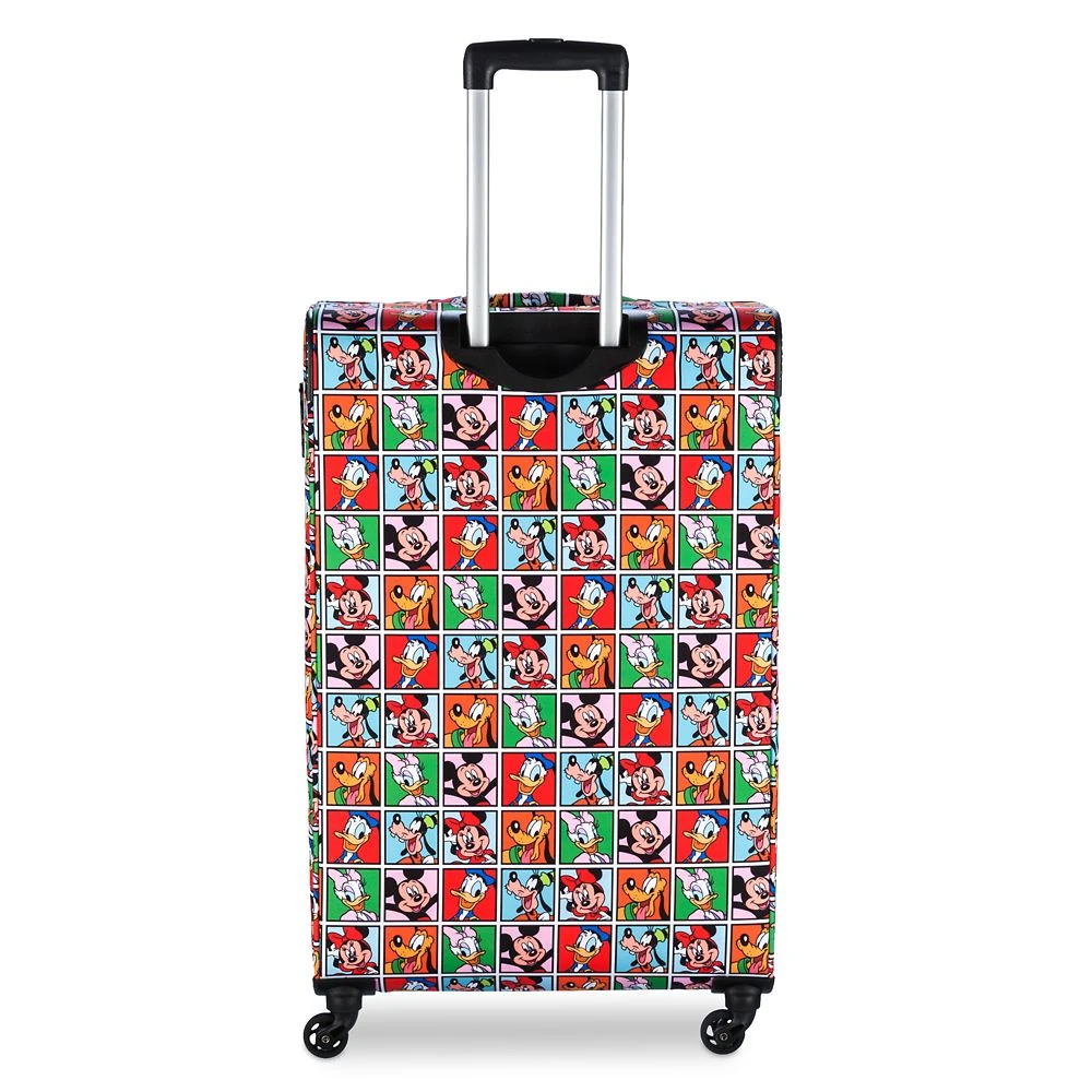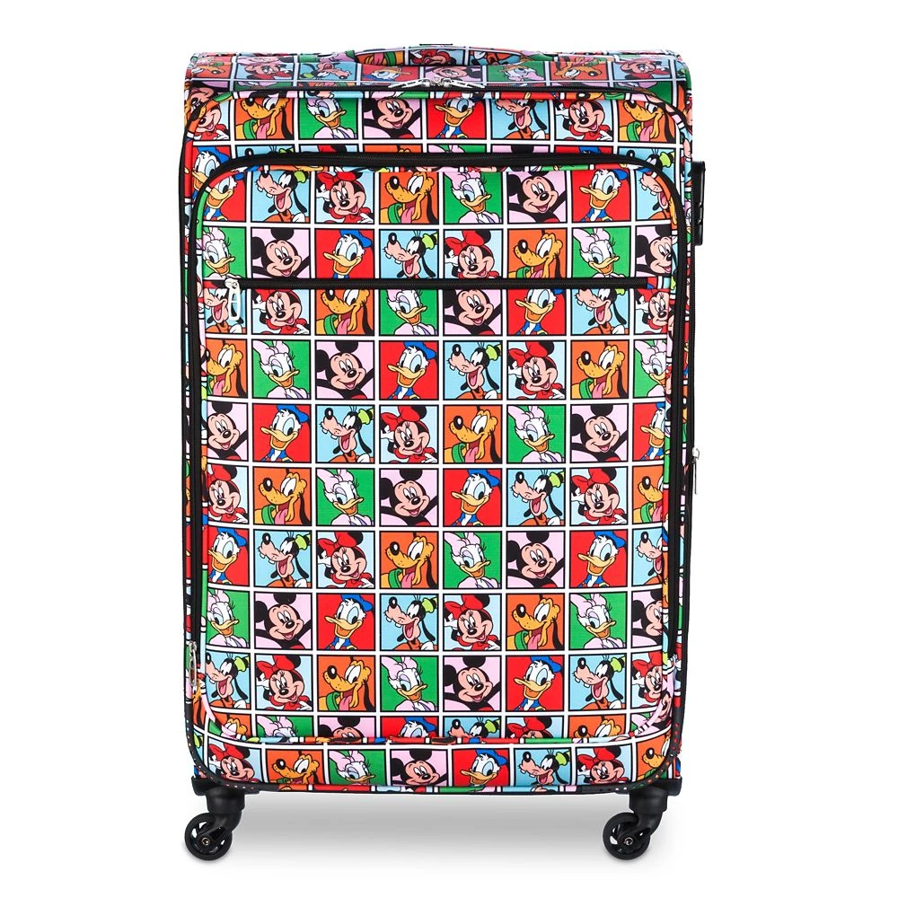 Pack-up your cares and forget ’em with Mickey’s textile covered rolling luggage. This soft shell travel case sports an allover print pattern that spotlights the whole gang, plus plenty of zip compartments and an extender section so you can fit all you need for your next trip to the Disney Parks.