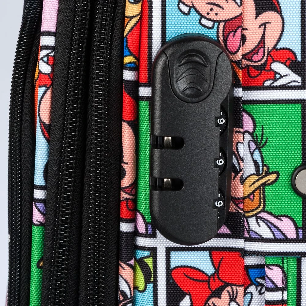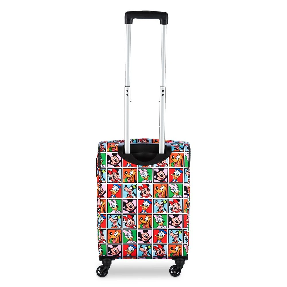 Pack-up your cares and forget ’em with Mickey’s textile covered rolling luggage. This soft shell travel case sports an allover print pattern that spotlights the whole gang, plus plenty of zip compartments and an extender section so you can fit all you need for your next trip to the Disney Parks.