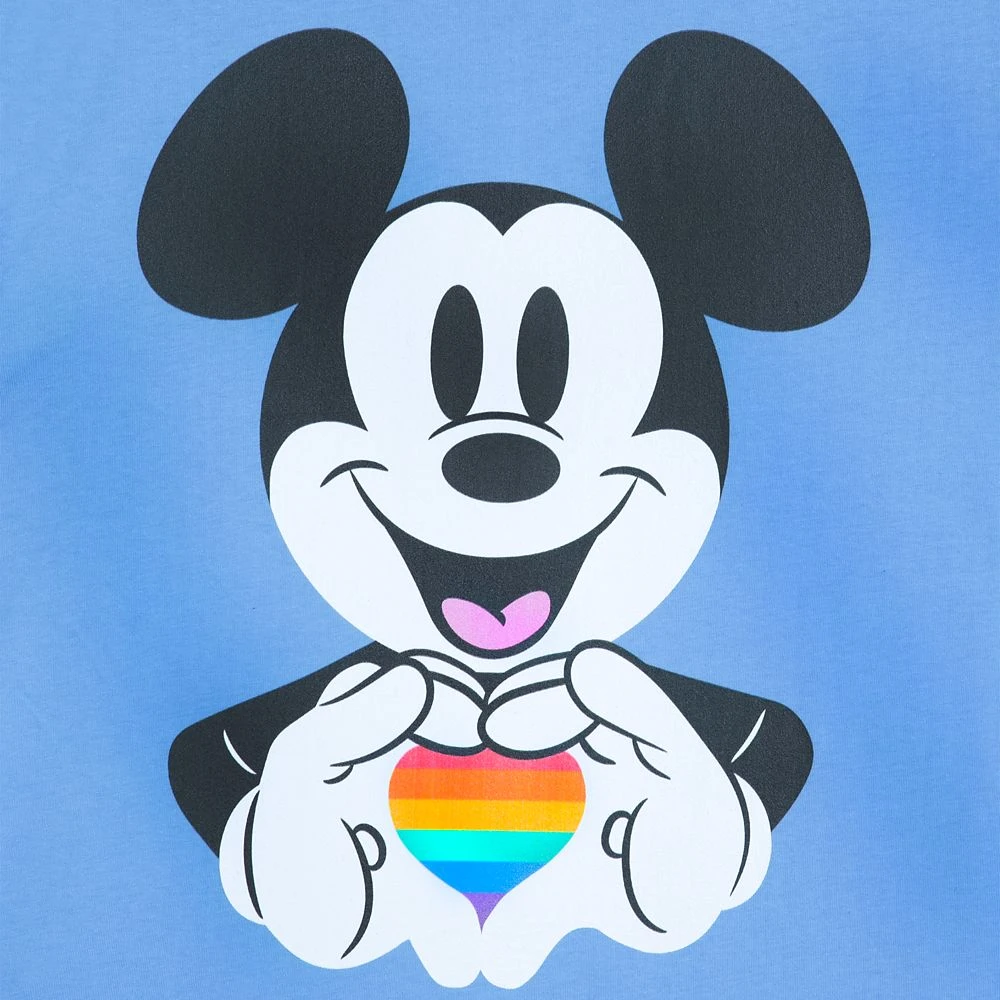 Love is true blue with this Mickey Mouse Pride Heart t-shirt. Featuring screen art of Mickey making a rainbow heart sign, this all-cotton blue tee is so soft and adorable, it’s love at first sight.Β